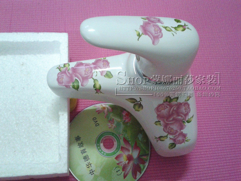 MNLS ceramic faucet hot and cold white color flower double three-hole washbasin faucet