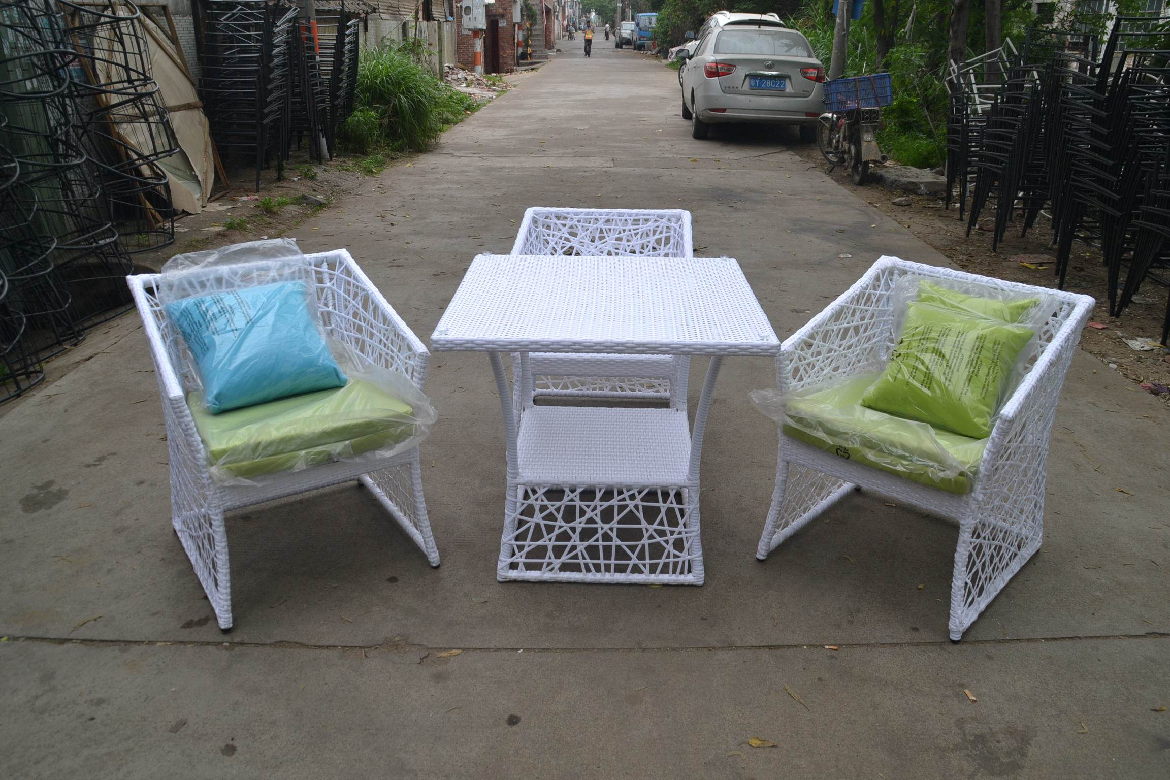 0 1 instead of freight collect, consult customer service 60*62*78 (rattan chair) 80*80*72 (table) three-piece set special shot (rattan color note) three-piece set with cushion special shot (rattan chair)