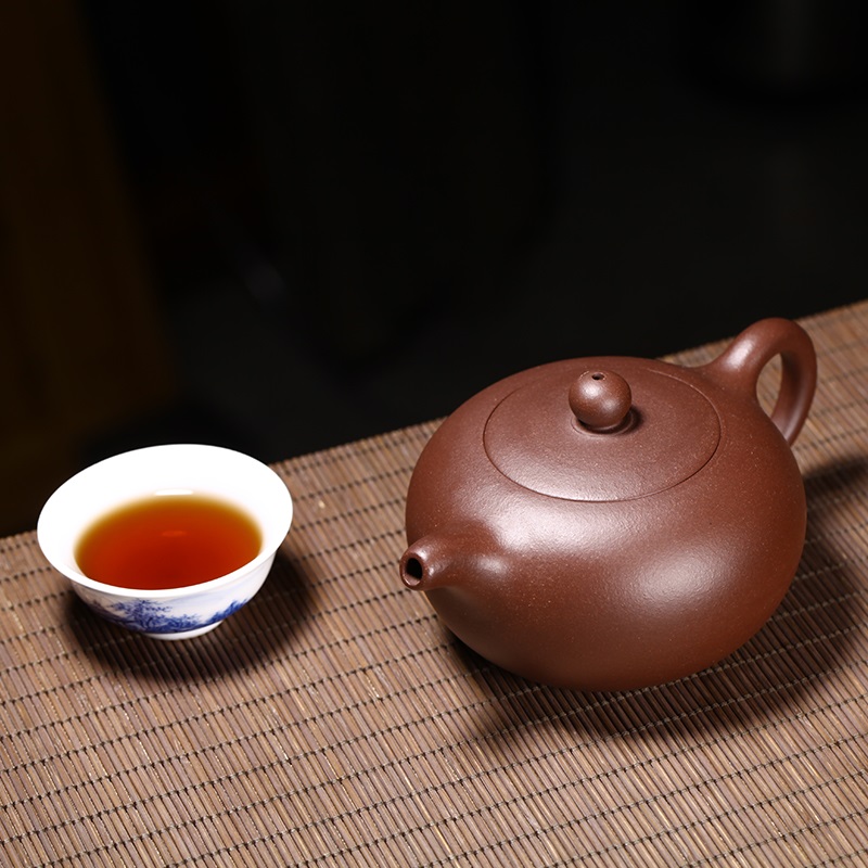 Through the ages Yixing original mine purple clay handmade famous hand-made Gongfu tea pot tea set flat rhyme