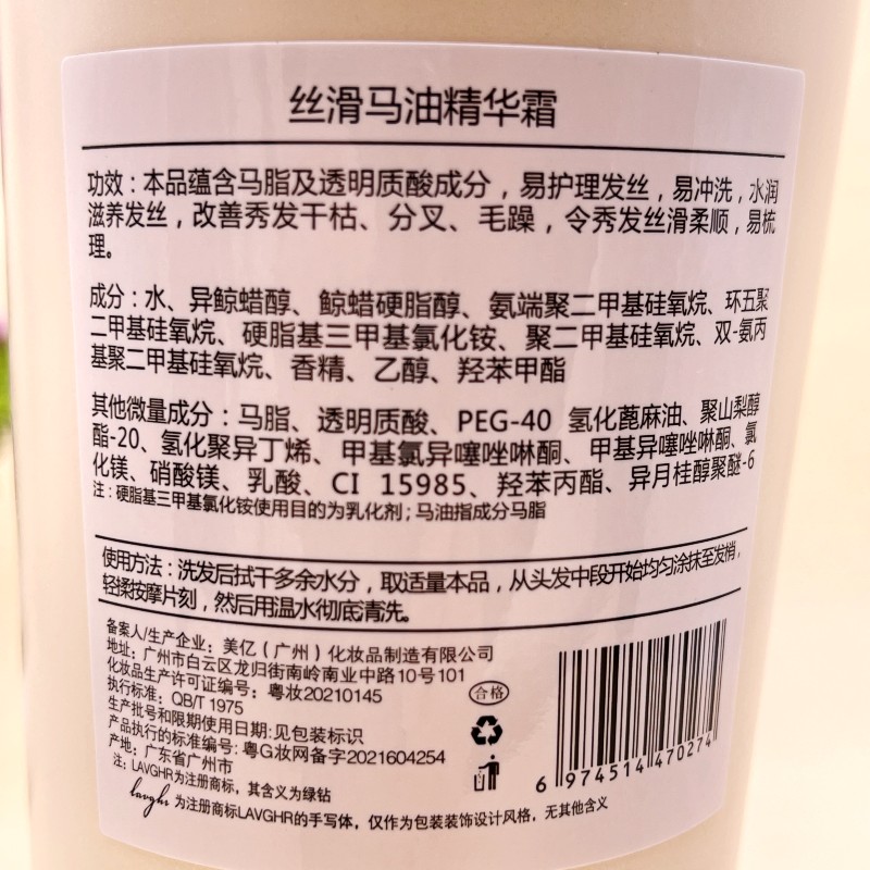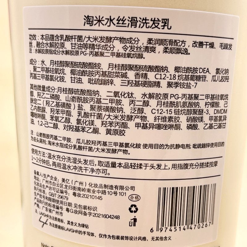 LAVGHR Silky Horse Oil Essence Cream Conditioner Taomi Water Shampoo Shampoo Long-lasting Fragrance 800ml