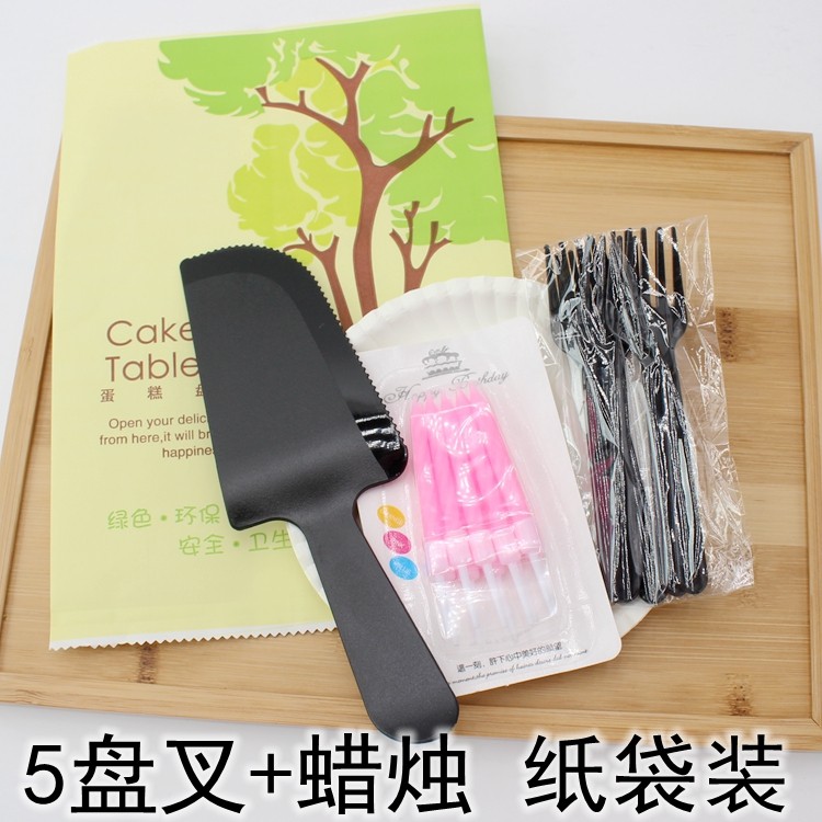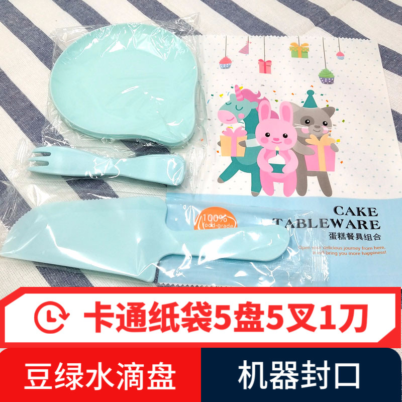 Light green No. 1 tray Fawn color fork Cartoon paper bag No. 1 tray Fawn color fork Cartoon paper bag 10 trays 10 forks Shovel knife Rainbow paper bag 5 trays 5 forks Shovel knife Rainbow paper bag water drop 5 trays wave fork