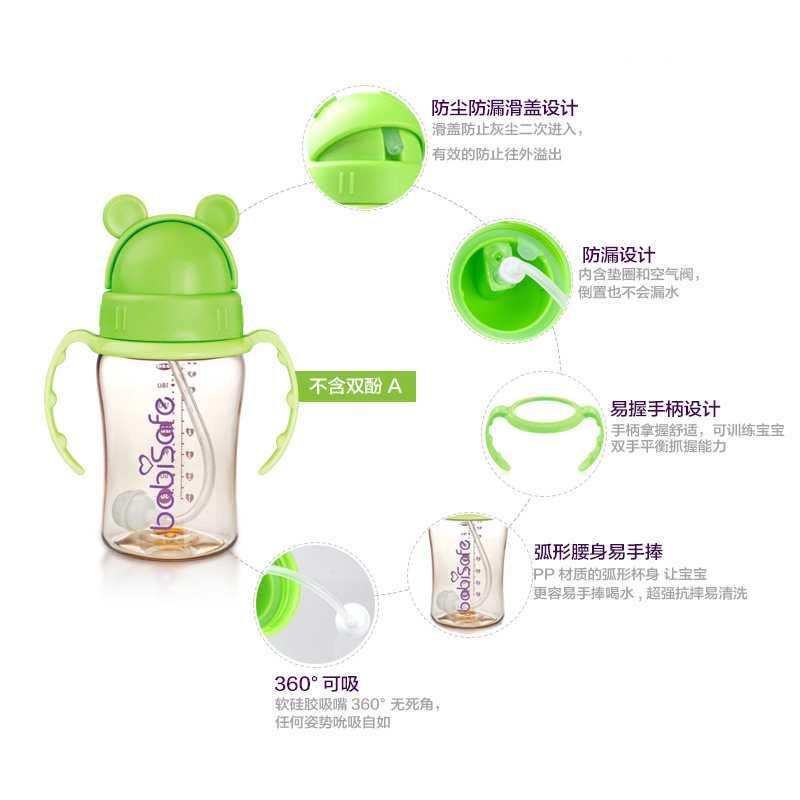 Anerxin baby PPSU straw cup Baby leak-proof learning drinking cup Clamshell training cup with handle Gravity ball