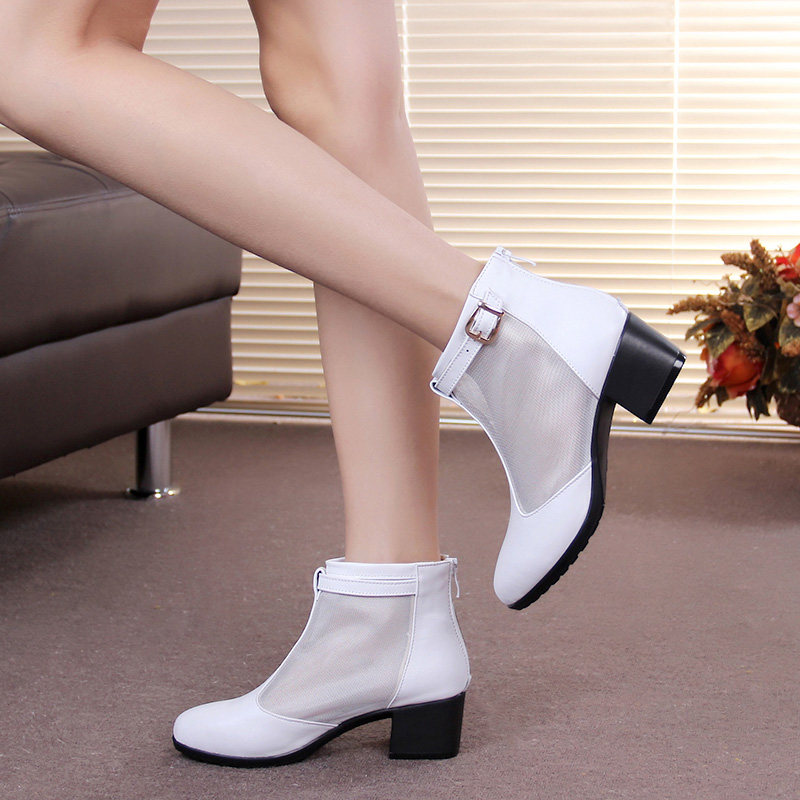 Dawn Spring and Summer women's shoes hollow boots white mesh boots in the boots with the leather mesh yarn 41