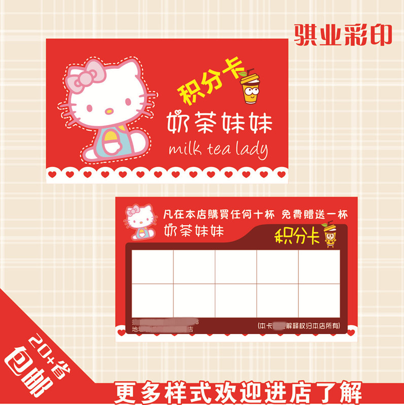 Milk tea shop coffee shop Beauty nail pet points card customized printing for children's student reward card