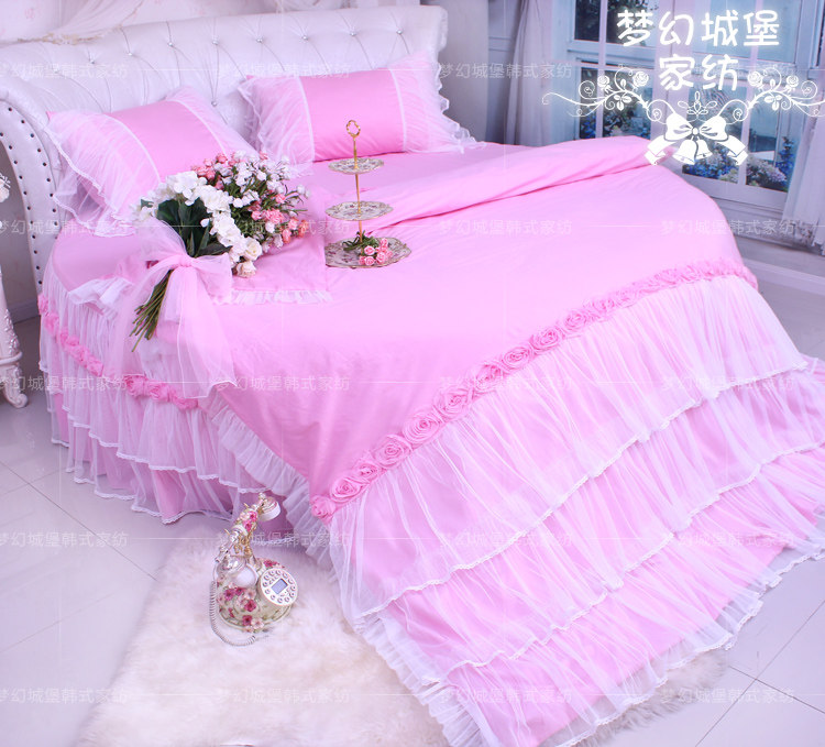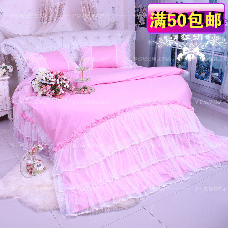 Round bed Bed Goods Four Pieces Round Beds 4 Pieces Of Pink Lace Round Bed Hood Princess Bed Accessories Romantic Love-Taobao