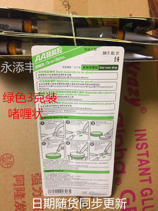 Alongfa AA super glue AC-003 gel-like green 3 grams of 1 7 2 yuan imported from Japan