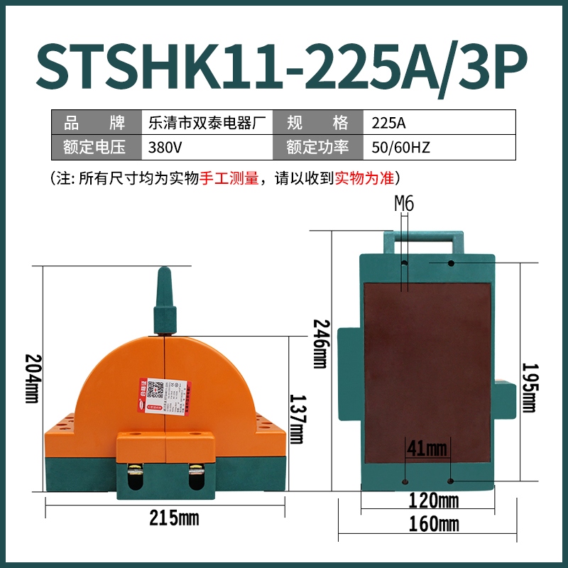 Double Tai STSHK11-3P225A red copper brake knife switch inverted double throw double power transfer switch