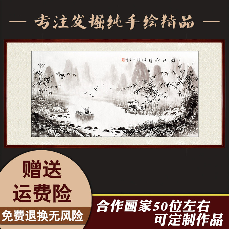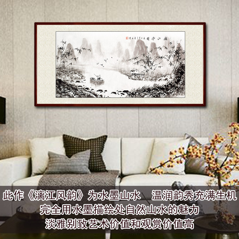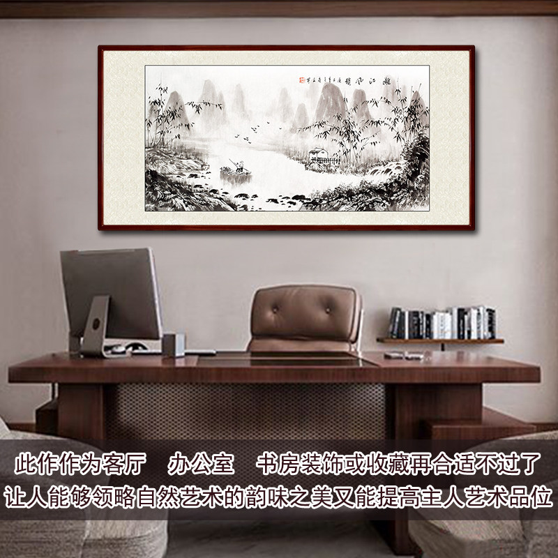 Pure hand-painted ink ink painting small size living room office bedroom hanging drawing three feet horizontal plate frame