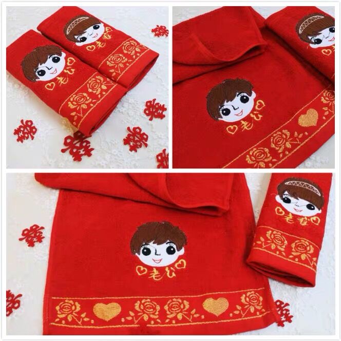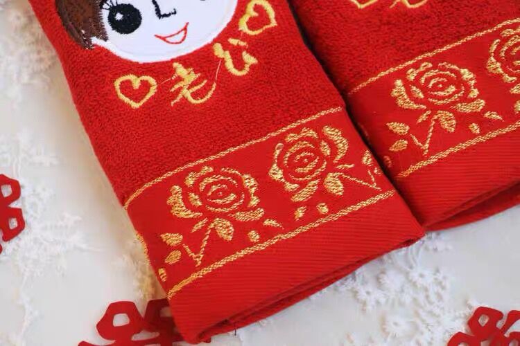 Wedding Wedding Wedding Supplies Big Red Wedding Festive Husband's wife Towel Cute Couple Towel Wedding towels-Taobao