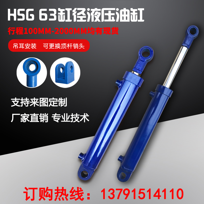 Cylinder HSG63 hydraulic cylinder two-way 5 tons lifting rod Hydraulic oil top Hydraulic pressure top Hydraulic cylinder top pump accessories