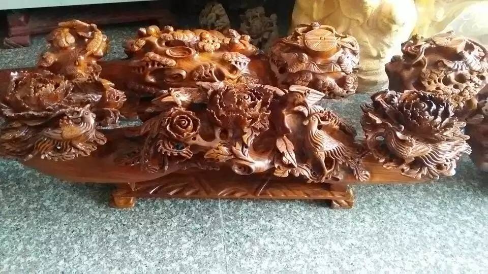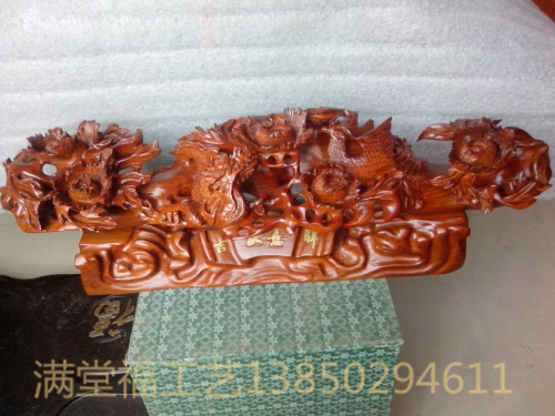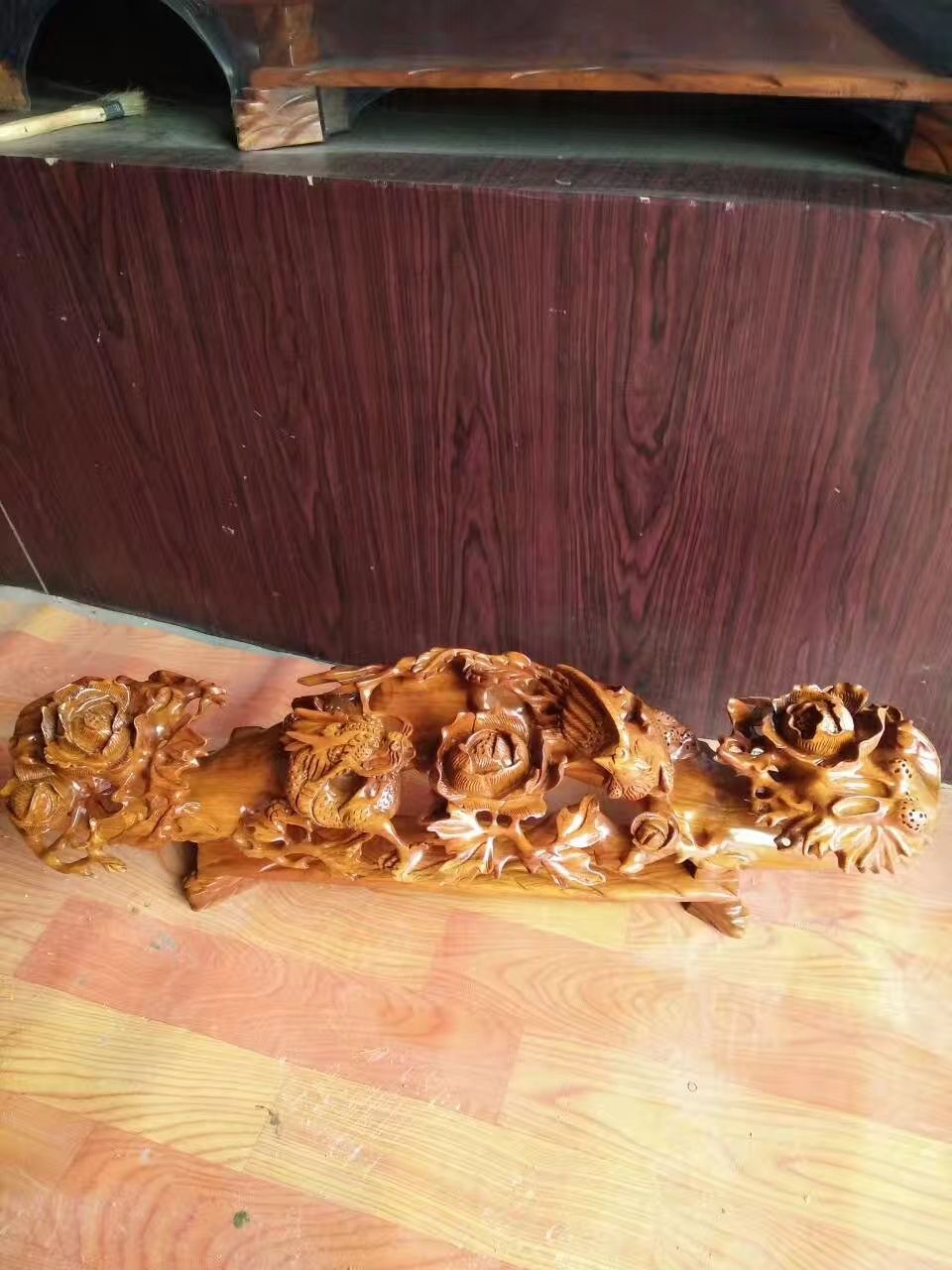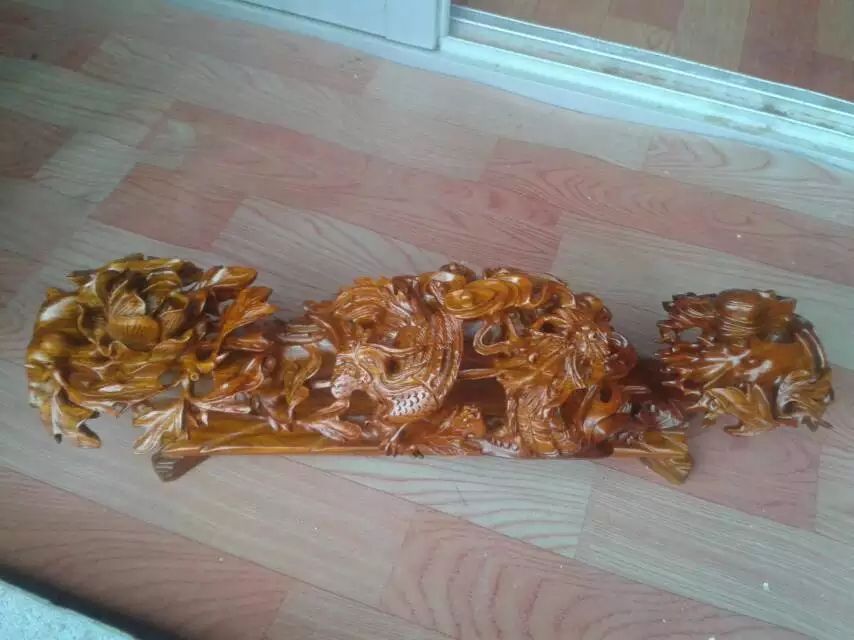 Huanghuali wood carving Ruyi dragon and phoenix peony figure crafts mahogany ornaments auspicious Ruyi opening gift large