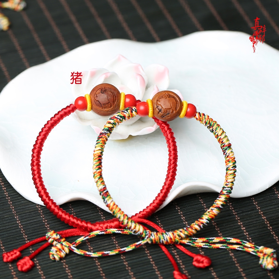Cinnabar original baby children's red rope hand clasp multicolored zodiac rabbit peach core bracelet woven bracelet