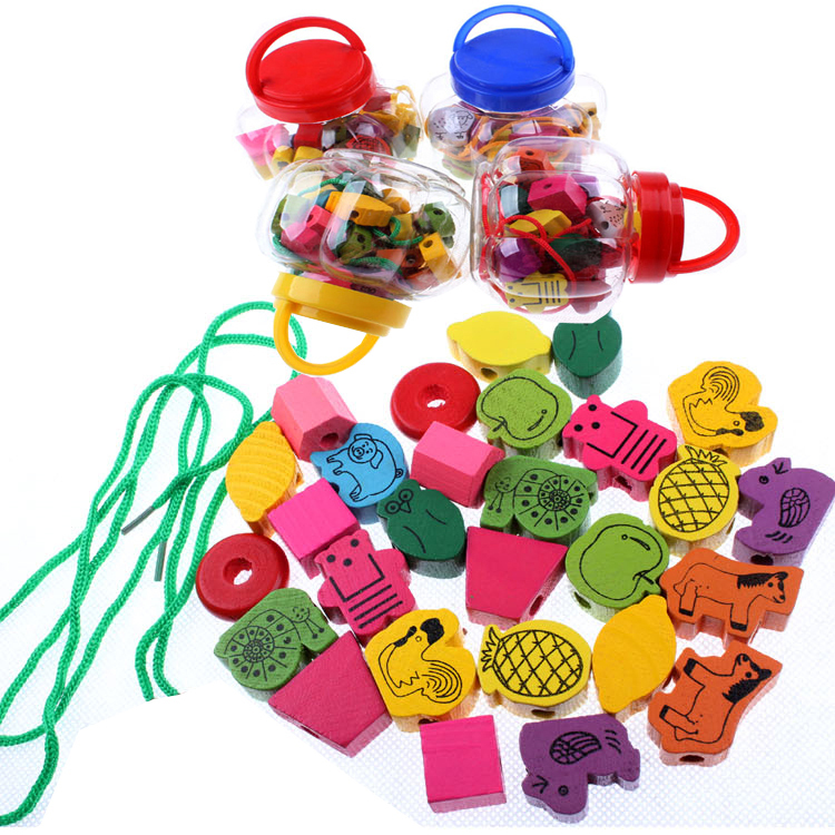 Wooden Baby Threading Strings Beads Son Building Block Male Girl Nursery School Children Puzzle Beads Toys 1-2-3-6 years old