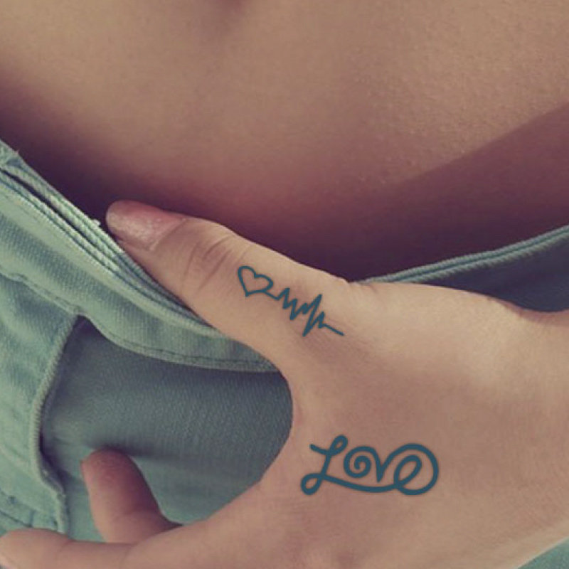 Small fresh sexy arm wrist chest foot back flowers English Love LOVE electrocardiogram tattooed sticker waterproof P069