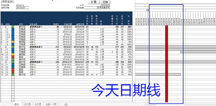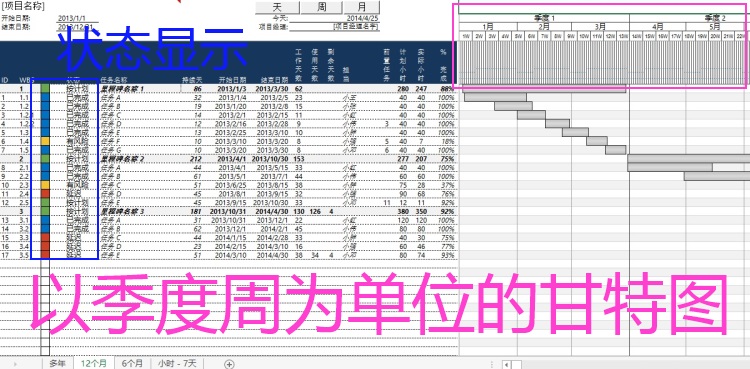 Excel Gantt chart displays a Gantt chart Gantt chart schedule for hour week quarterly units