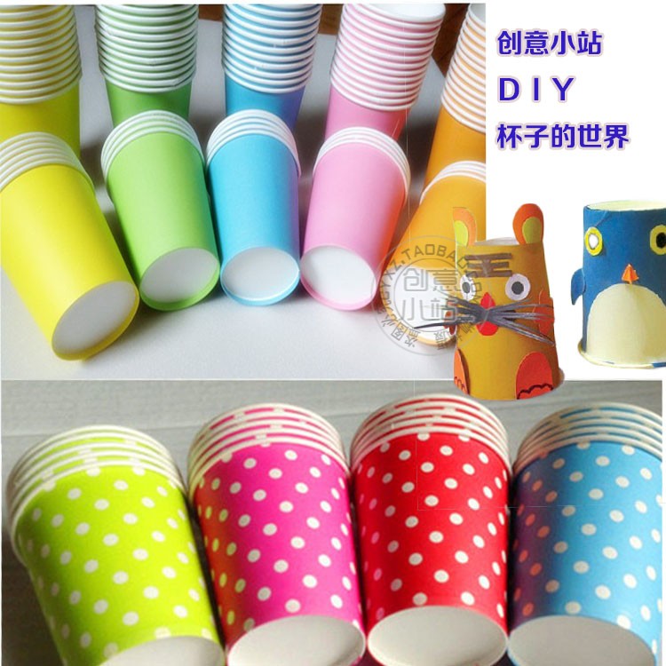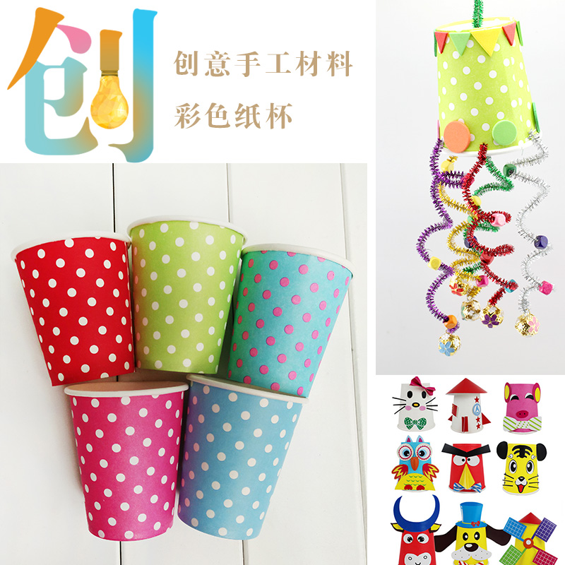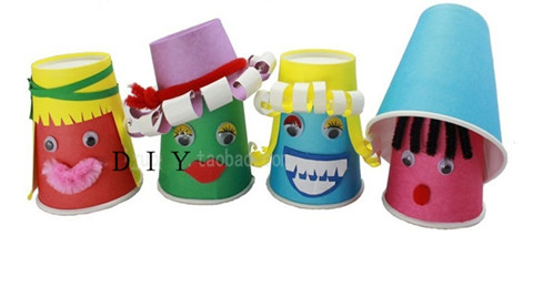 Disposable color white paper cups filled with waste use handmade kindergarten early education art children's creative pro