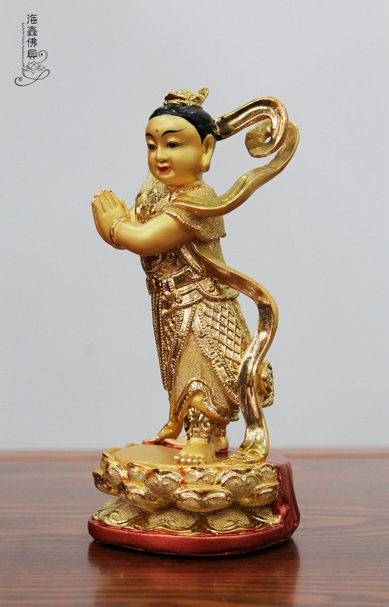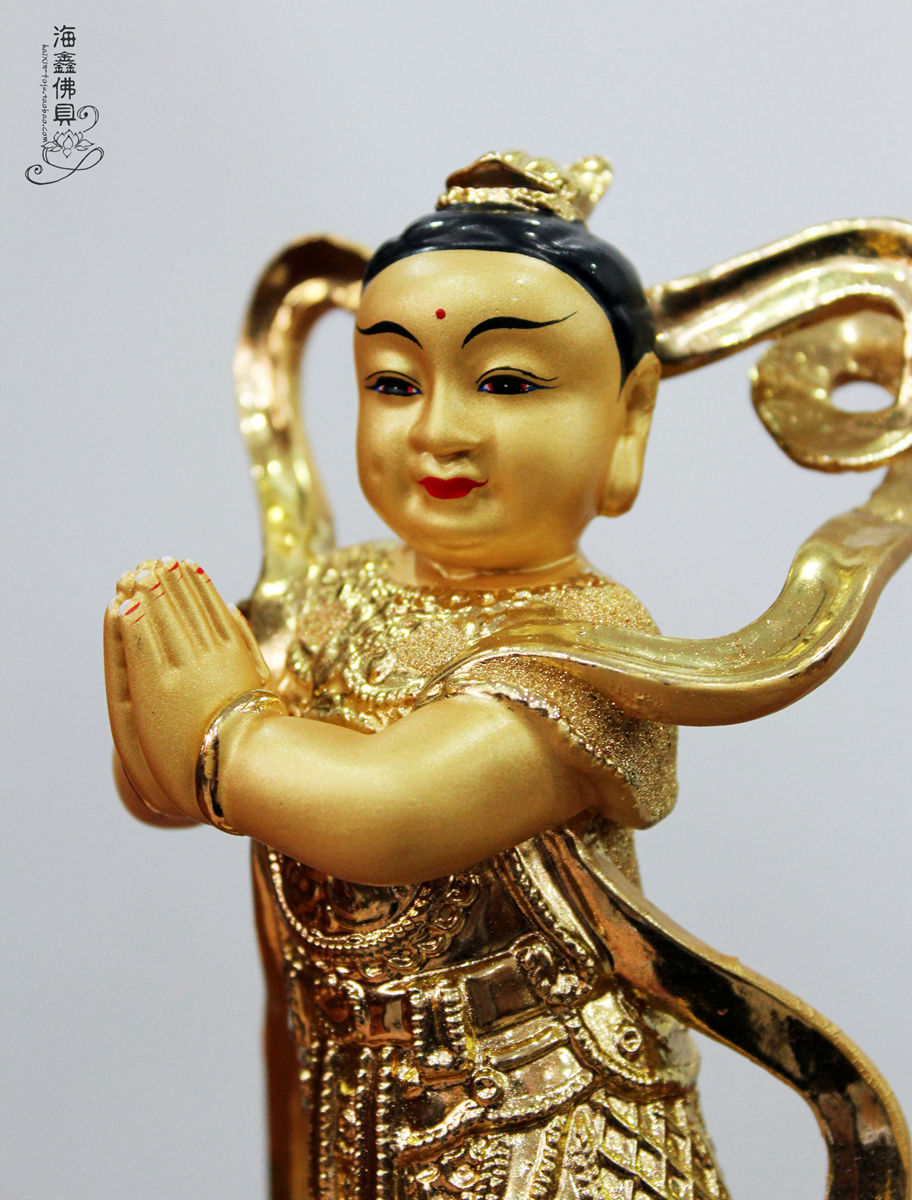 Haixin Buddha's solemn Buddha statue glass fiber resin golden boy good wealth boy 8 10 12 16 inches