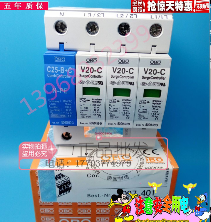 OBO lightning arrestor OBO power surge protection single-phase 220V lightning arrestor V20-C1 +NPE V20-C2