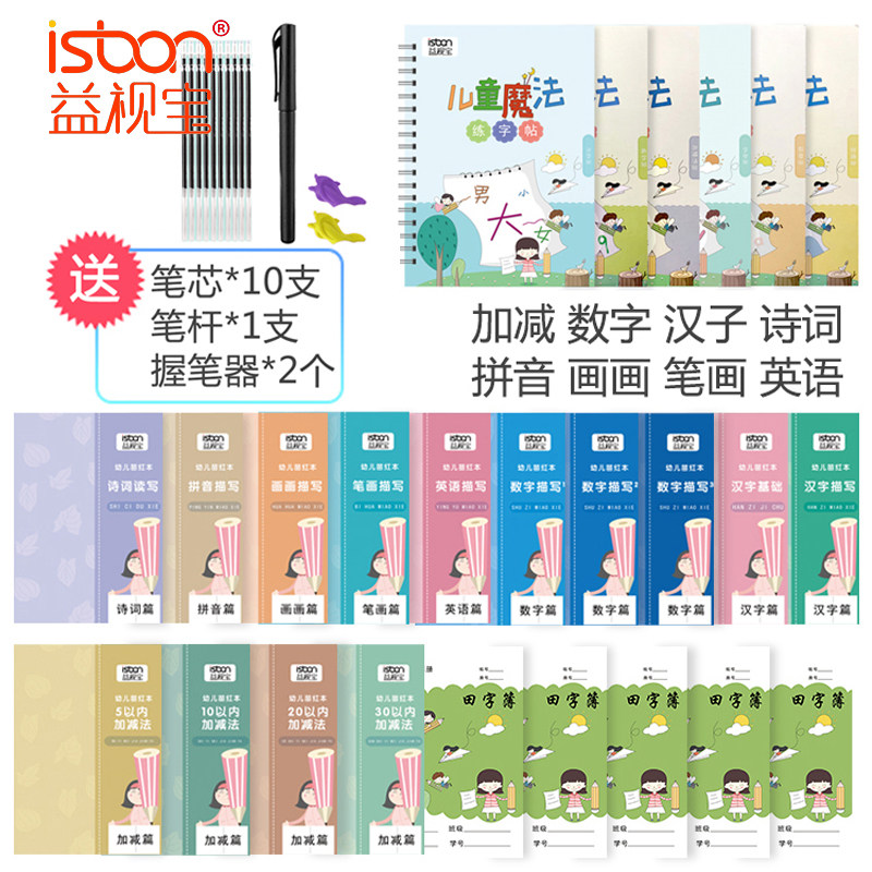 Children's stationery rehearsals Red book Learning Supplies Gift Box Set Set Full groove Control Pen Training Kindergarten Pre-grade Primary school Primary school Primary school Primary School Primary School Primary School Kindergarten Entrance Necessary