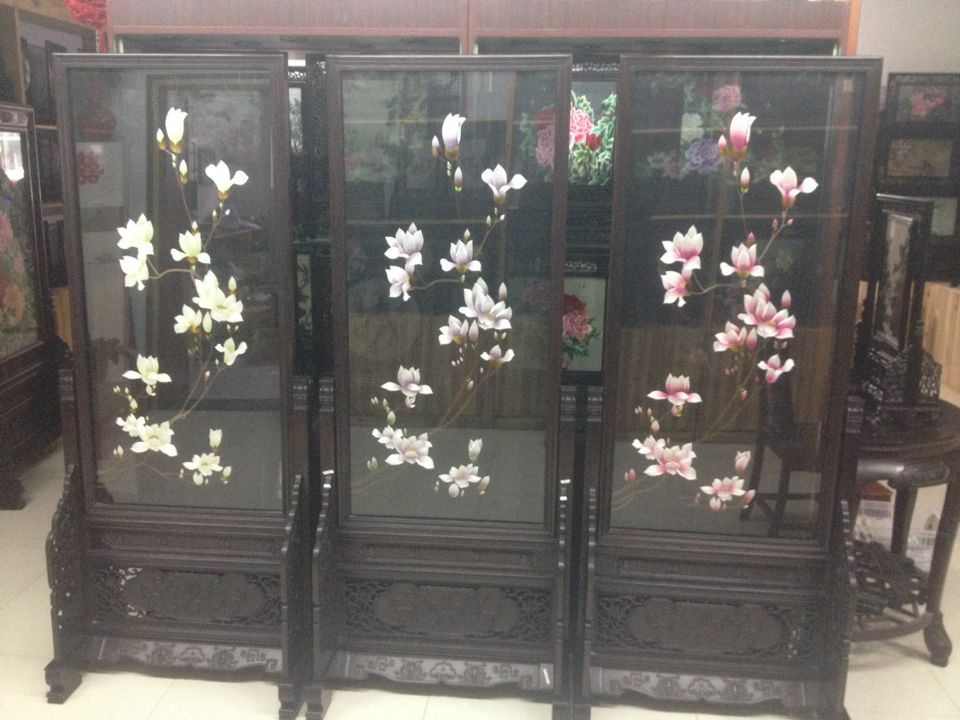 Fine double-sided embroidery magnolia flower origin direct sales decorative painting ornaments floor-to-ceiling screen high-grade Su embroidery finished products