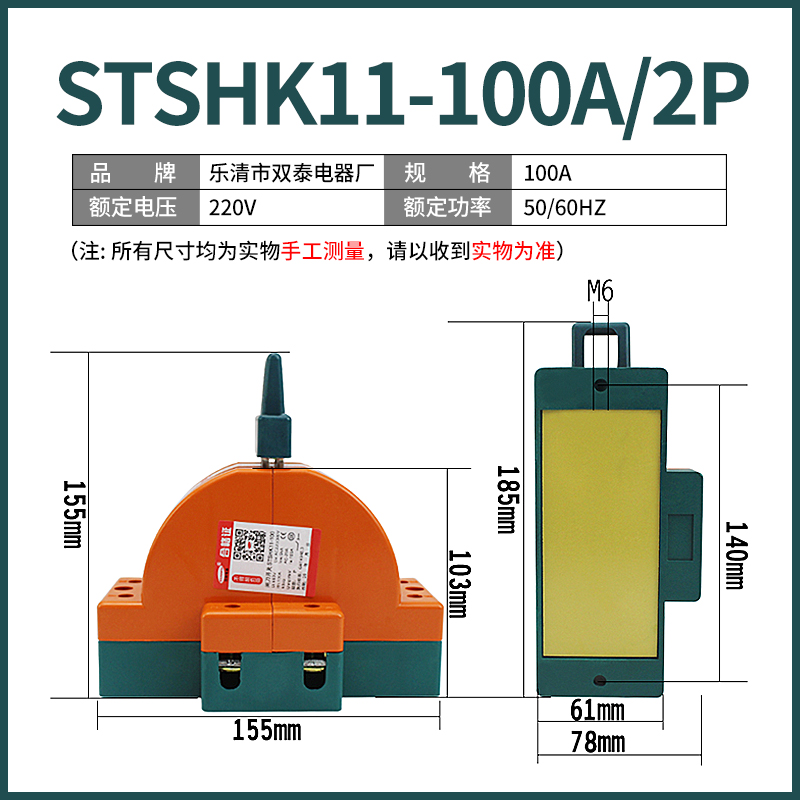 Two-way gate knife switch Home 220V inverted knife brake switch 2P100A Double throw switch with head brake Double Tai