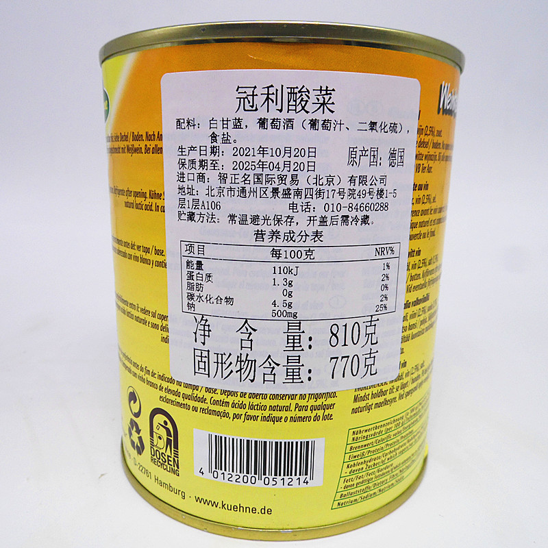 German Import Crown Lionic Acid Vegetable 810g Sour Broccoli Western Food Ingredients Salty Vegetable Sauerkraut Baigan Blue Open Jar Ready-to-eat