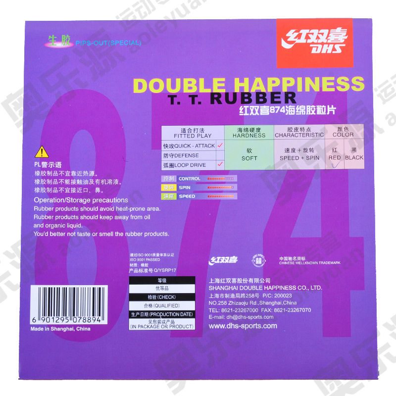 DHS red double happiness 874 fast break arc circle type table tennis racket rubber raw rubber cover rubber