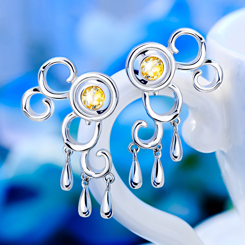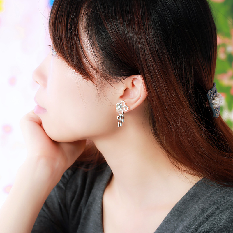Qin Shi Mingyue earrings lucky stone two yuan authentic country diffuse surrounding snow female flying snow jade 925 silver eardrops