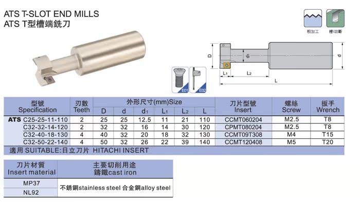 Dek Milling Cutter Rod type slot end milling cutter fit CCMT09T308 blade ATS C32-40-18-130