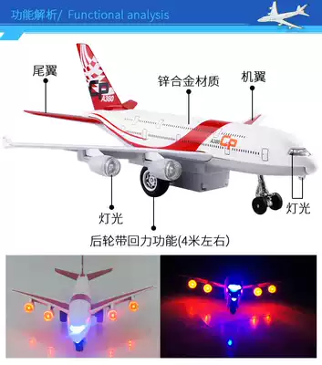 Alloy aircraft A380 passenger aircraft Airbus large passenger aircraft sound and light return model children's toys