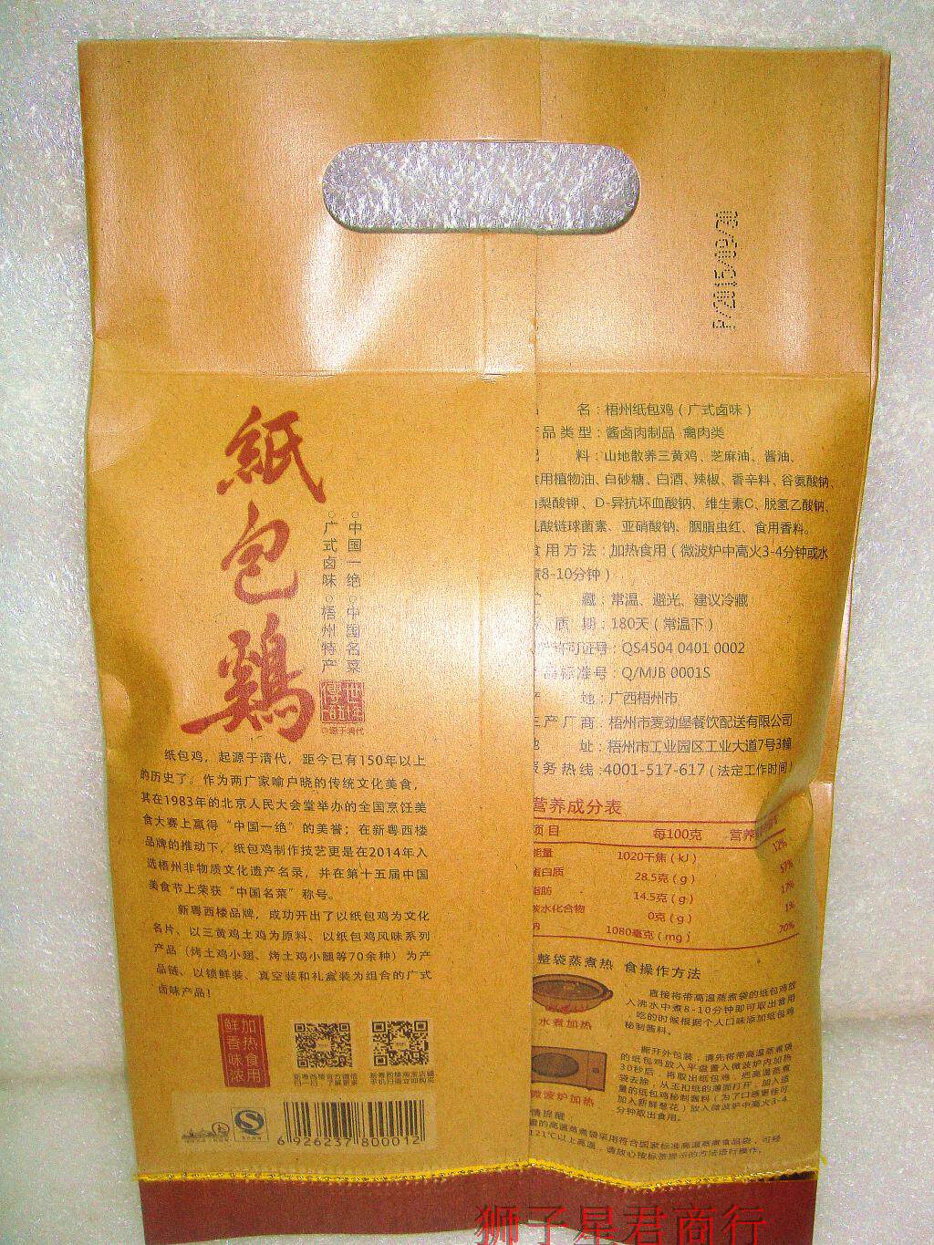 () Guangxi specialty new Yuexilou famous Wuzhou paper-wrapped chicken 110g*2 package of Cantonese style stewed flavor