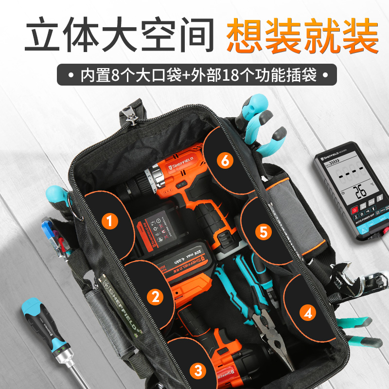 Steel Shield Canvas Kit Waterproof Hand Multifunction Kit Large Number Mid Size Electrician Repair Single Shoulder Bag