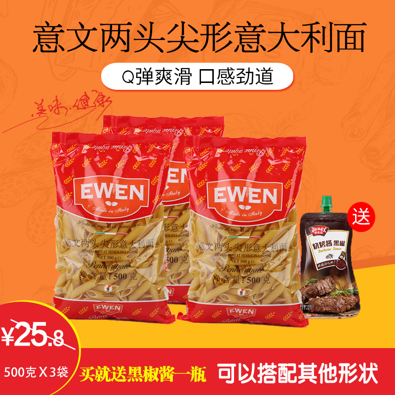 Import Italian pasta spaghetti screw face size bend both tip straight strip 500g * 3 bag optional