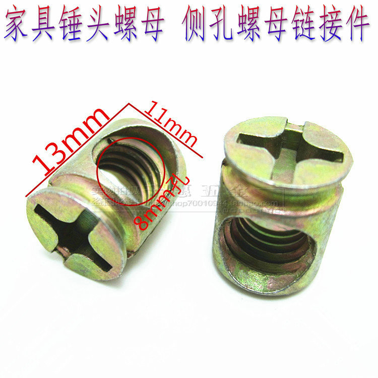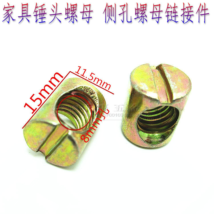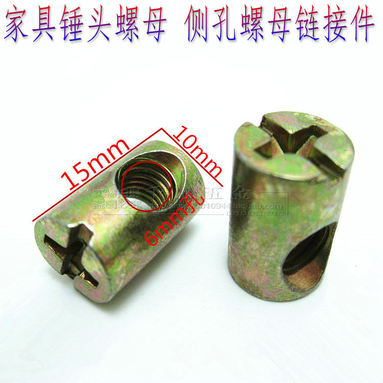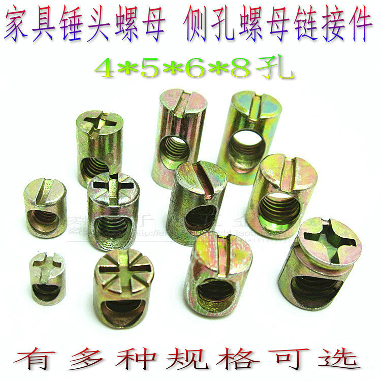 Furniture hardware accessories side hole nut screw baby crib iron nut hammer nut horizontal hole nut 4M6M8M