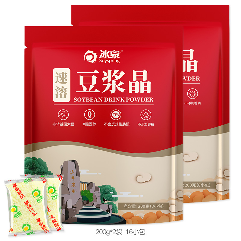 Ice Spring Soy Milk Crystal Instant 200g*2 Classic Original Nutritional Breakfast Non-GMO Sweet Soy Milk Powder Coffee Companion