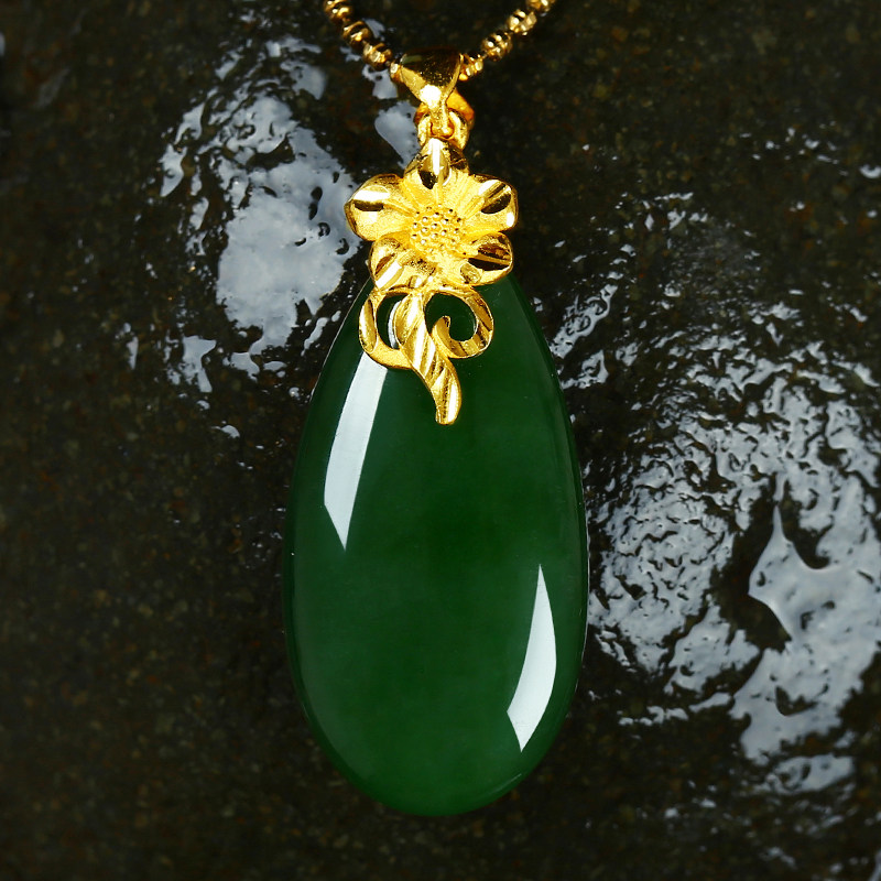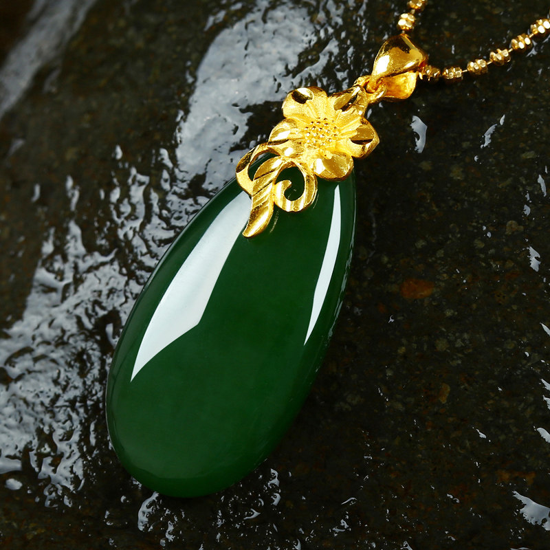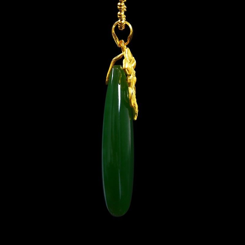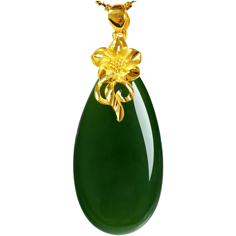 Jasper Zun Gold Inlaid Jade Jasper Hetian Jade Water Drop Pendant 18K Gold Necklace Female Hanging Jade Pendant as a Gift for Mom