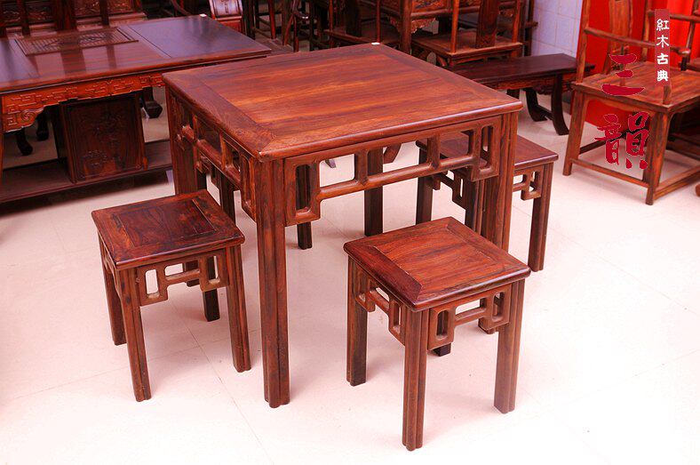 Chinese Red Wood Furniture Large Red Acid Branches Small Square Table Solid Wood Small Dining Table Mahjong Chess Board Table And Chairs Casual Tea Table-Taobao