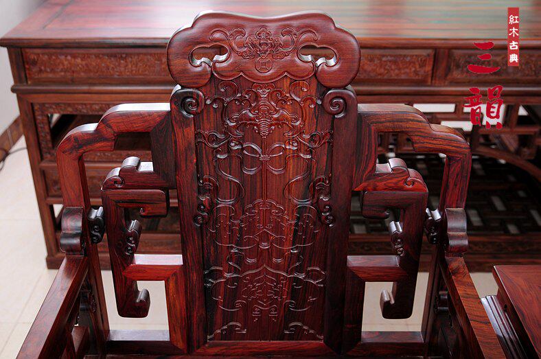 Red wood Chinese imitation antique toe yellow sandalwood Classical Furniture Laos Big Red Acid Branches Square chairs 3 pieces-Taobao