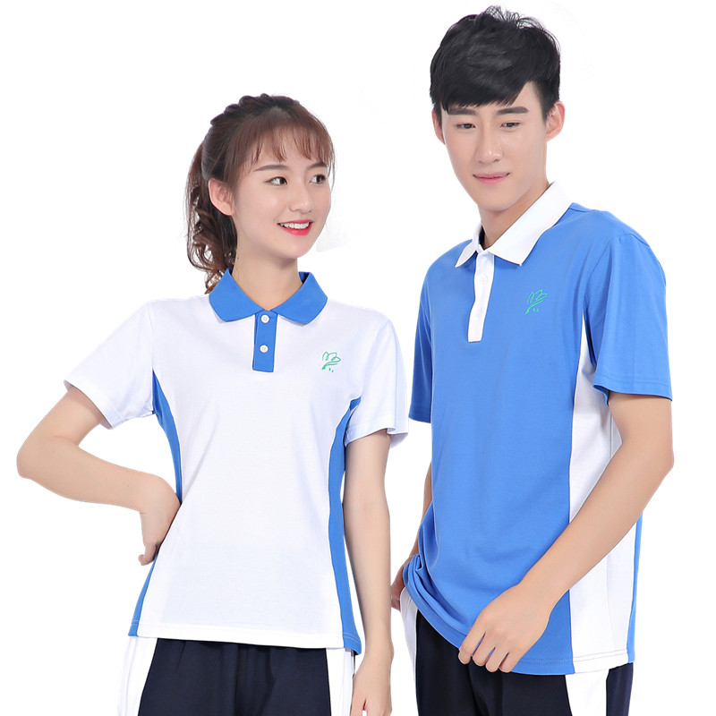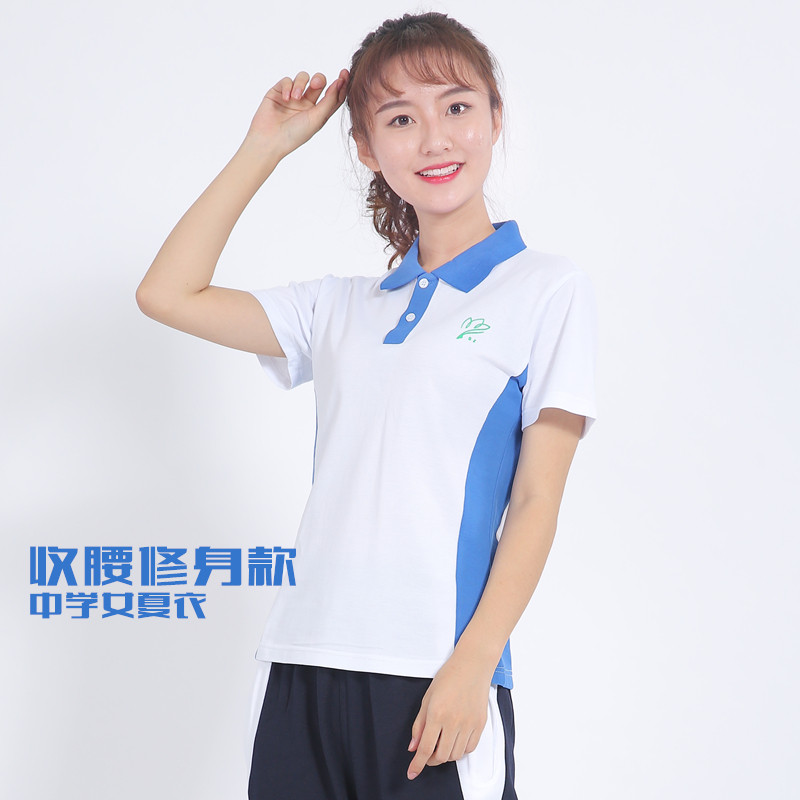 Shenzhen school uniform Middle school girls summer sports clothes top Short sleeve waist slim version College style school uniform T-shirt