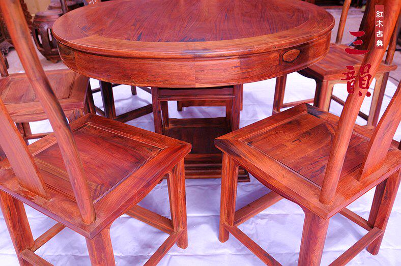 Red Wood Furniture Laos Large Red Acid Branches Wooden Dining Table And Chairs Combined Chinese Imitation Ancient Ming Clear Round Dining Table Solid Wood Dining Table-Taobao