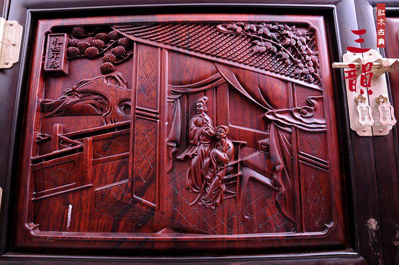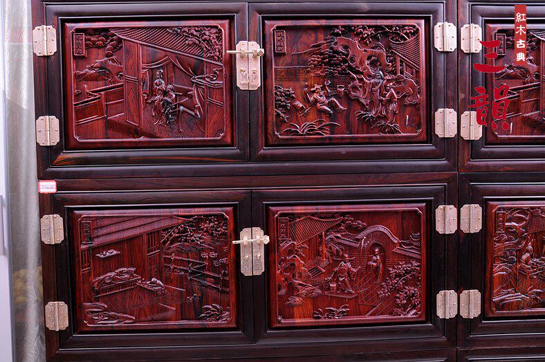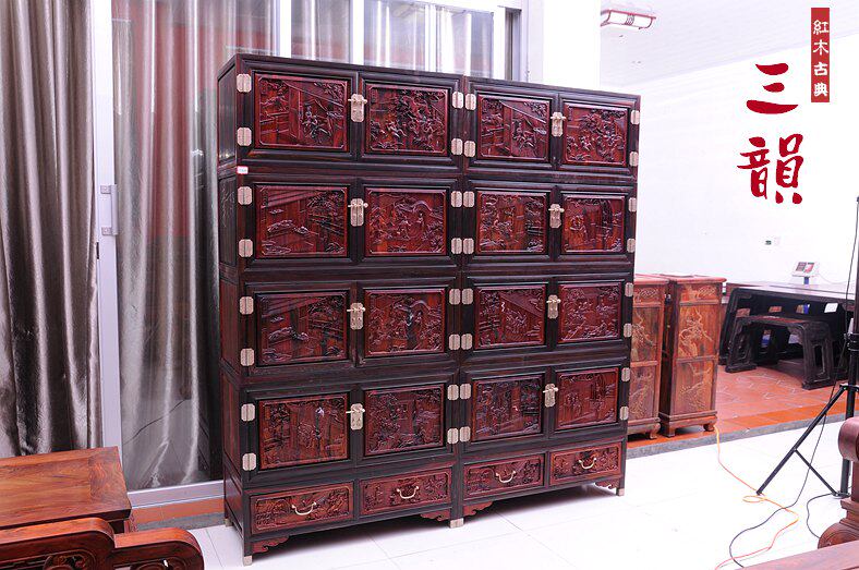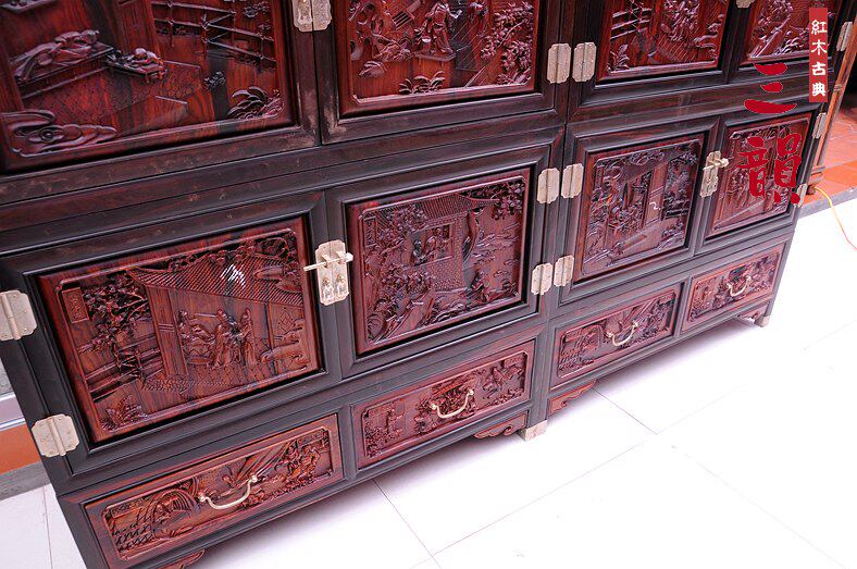 Classical Red Wood Furniture Intertoe Yellow Sandalwood Lao Large Red Acid Branch 24 Filial Cabinet Hidden Painting Cabinet Cabinet Wardrobe-Taobao