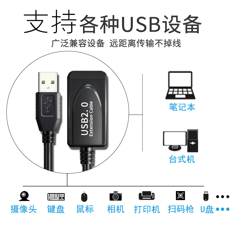Rongshenghui usb2.0 extension line 10 meters male to female scanner camera network card extension data line 15 meters