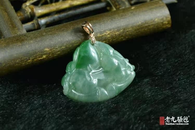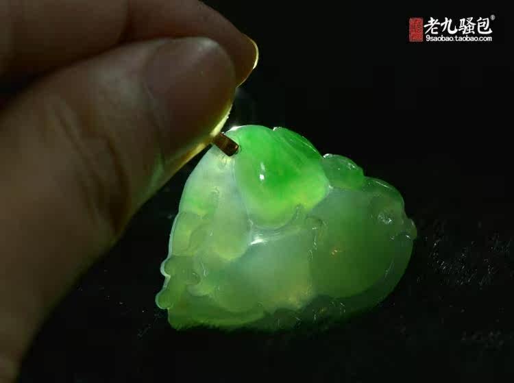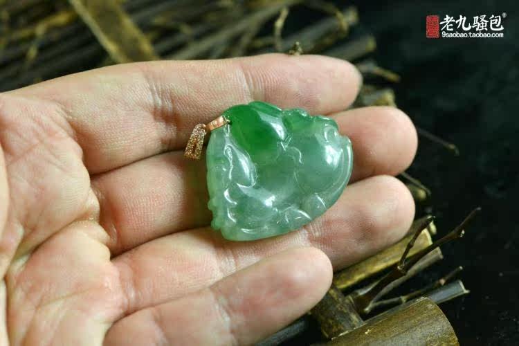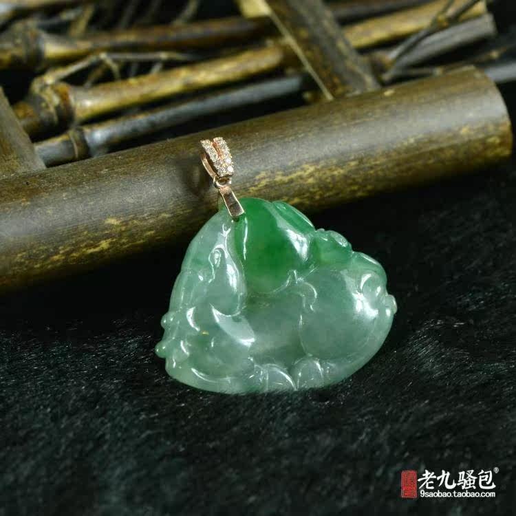 (Fu Lu Shou) Laokeng Nuo Ice Floating Sun Green A Emerald Pendant Deer Bat Peach Carving 13 5g