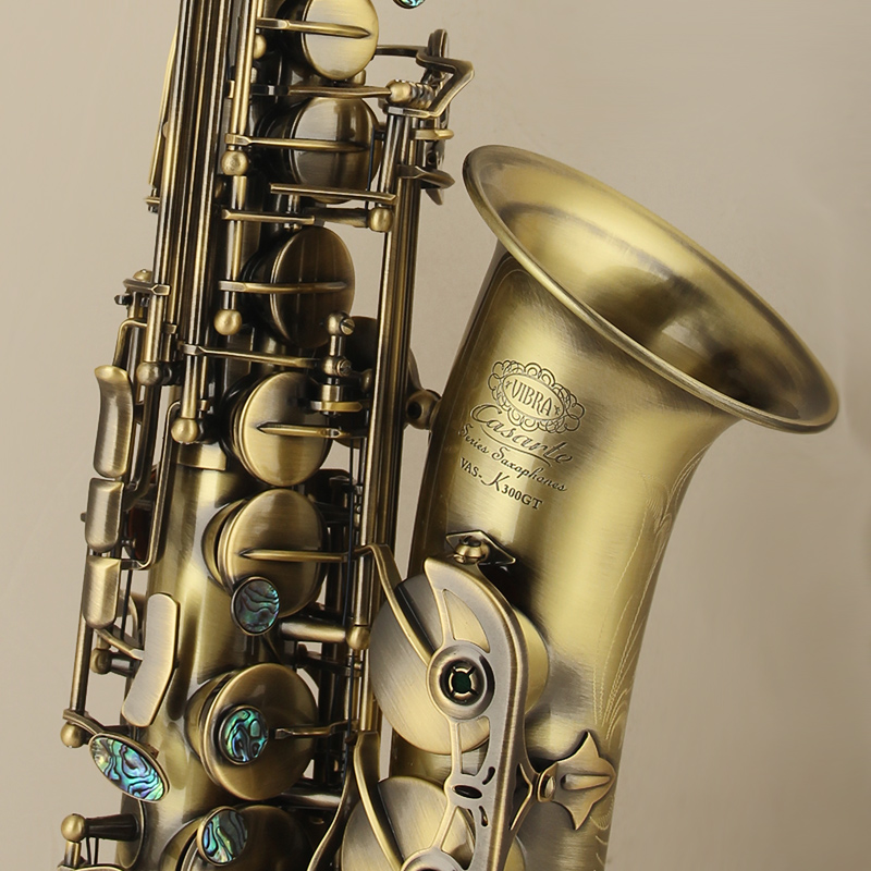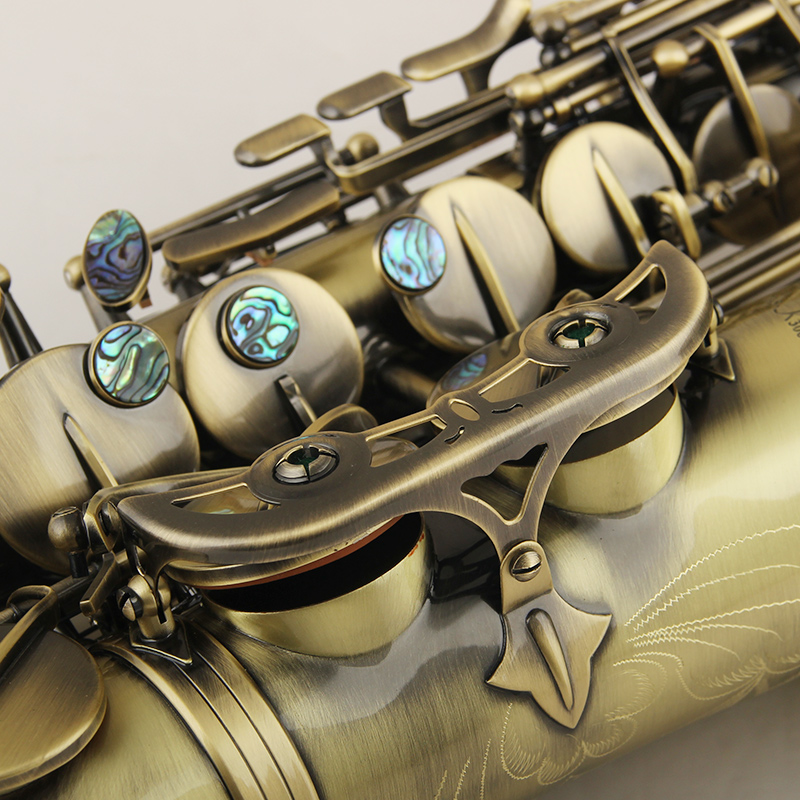 Weiplatz in E-tone Acoustic Saxophone Wind K300GT Brass Green Bronze Color Buckle Full Sculpted Flowers