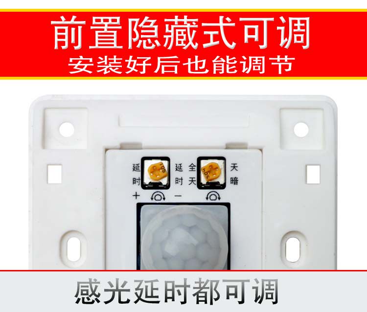 Infrared human body sensor switch connected to LED light energy-saving lamp 86 type high sensitivity adjustable photosensitive delay