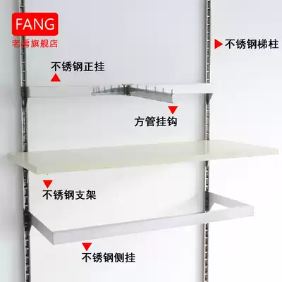 Old house clothing store props hanging square tube combination custom card hanger stainless steel crossbar ladder adhesive hook side hanging