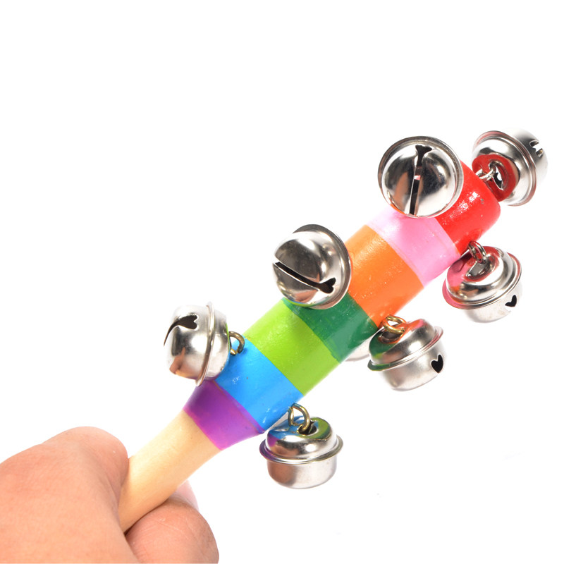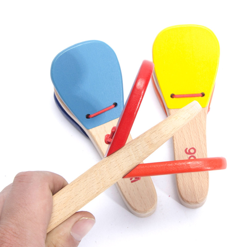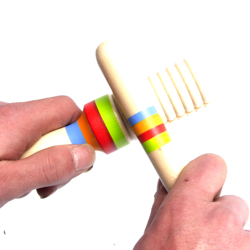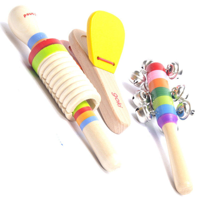 Olff percussion instrument rainbow hand rattle bell stick Suzuki make small wooden fish rattle with handplate children dance