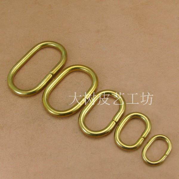 Handmade leather art leather carved leather bag carrying ring hanging ring (oval mouth sub-ring brass egg ring)