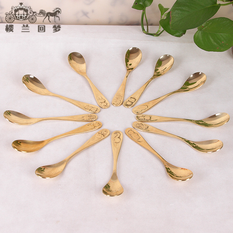 Copper spoon copper spoon copper rice spoon Handmade long handle rice spoon Household tableware Pure copper Twelve raw spoon single