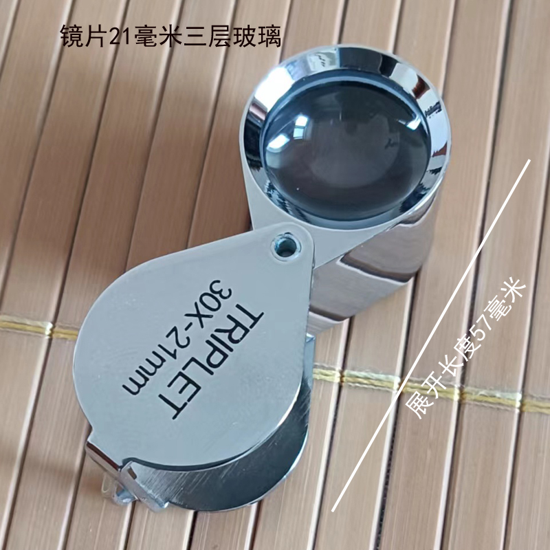 High-magnification magnifying glass 30 times triple glued 21 mm optical glass lens high-definition identification jewelry text play jade